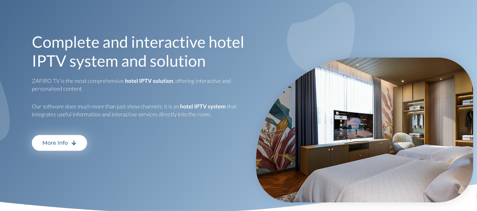 -User-friendly entertainment interface: Zafiro IPTV is designed for intuitive guest navigation with tailored TV content and service options.